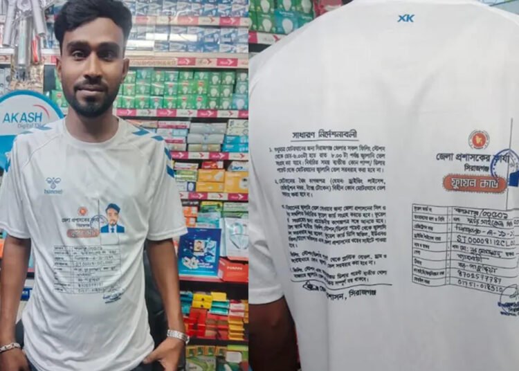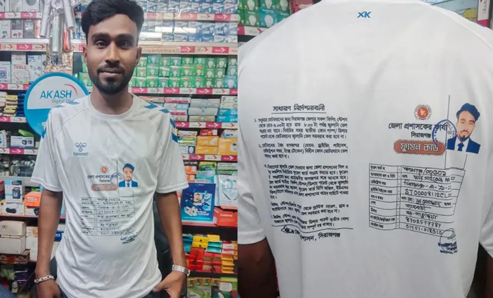 ফুয়েল কার্ড না থাকলে তেল নয়। একারণে সিরাজগঞ্জের কামারখন্দে নূর মোহাম্মদ নামের এক ইলেকট্রনিক্স ব্যবাসয়ী গেঞ্জিতে ফুয়ে কার্ড প্রিন করেছেন। বিষয়টি উপজেলা জুড়ে আলোচনার কেন্দ্রবিন্দু এক অভিনব উদ্যোগ। এমন উদ্যোগে এলাকায় আলোচনার সৃষ্টি হয়েছে।