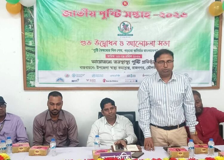 পুষ্টি বৈষম্যের দিন শেষ,গড়বো স্বনির্ভর বাংলাদেশ” এই প্রতিপাদ্যকে সামনে রেখে মৌলভীবাজারের রাজনগর উপজেলায় জাতীয় পুষ্টি সপ্তাহ ২০২৬-এর উদ্বোধন ও আলোচনা সভা অনুষ্ঠিত হয়েছে।