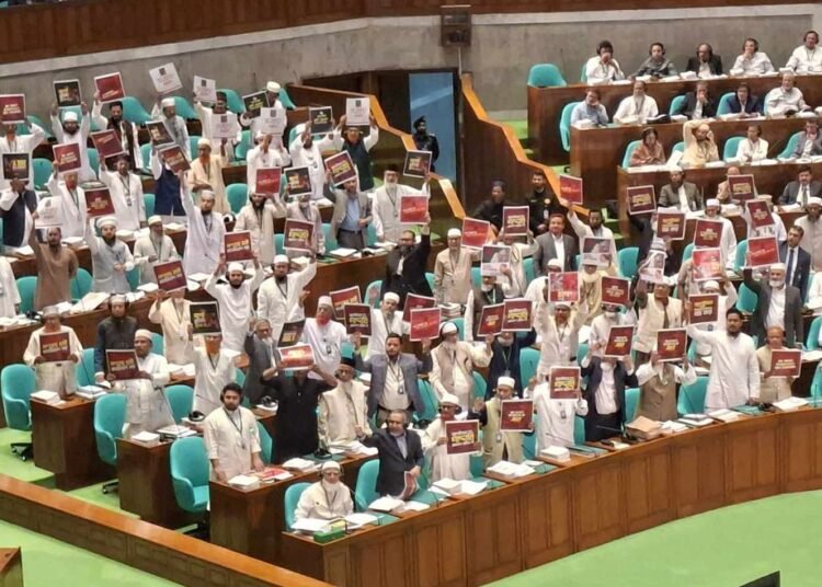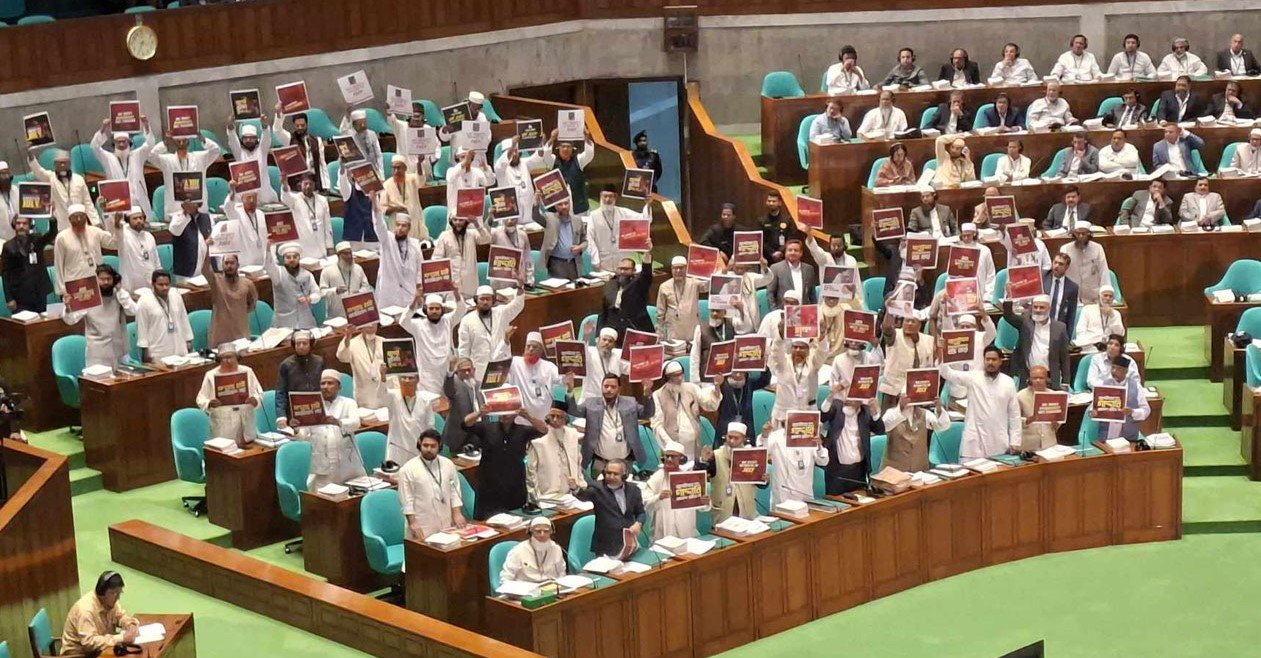 ওয়াকআউটের সময় জামায়াতের নেতৃত্বাধীন বিরোধীদলীয় সংসদ সদস্যরা ‘জুলাইয়ের সঙ্গে বিশ্বাসঘাতকতা বন্ধ কর’ লেখা সম্বলিত প্ল্যাকার্ডও প্রদর্শন করেন।