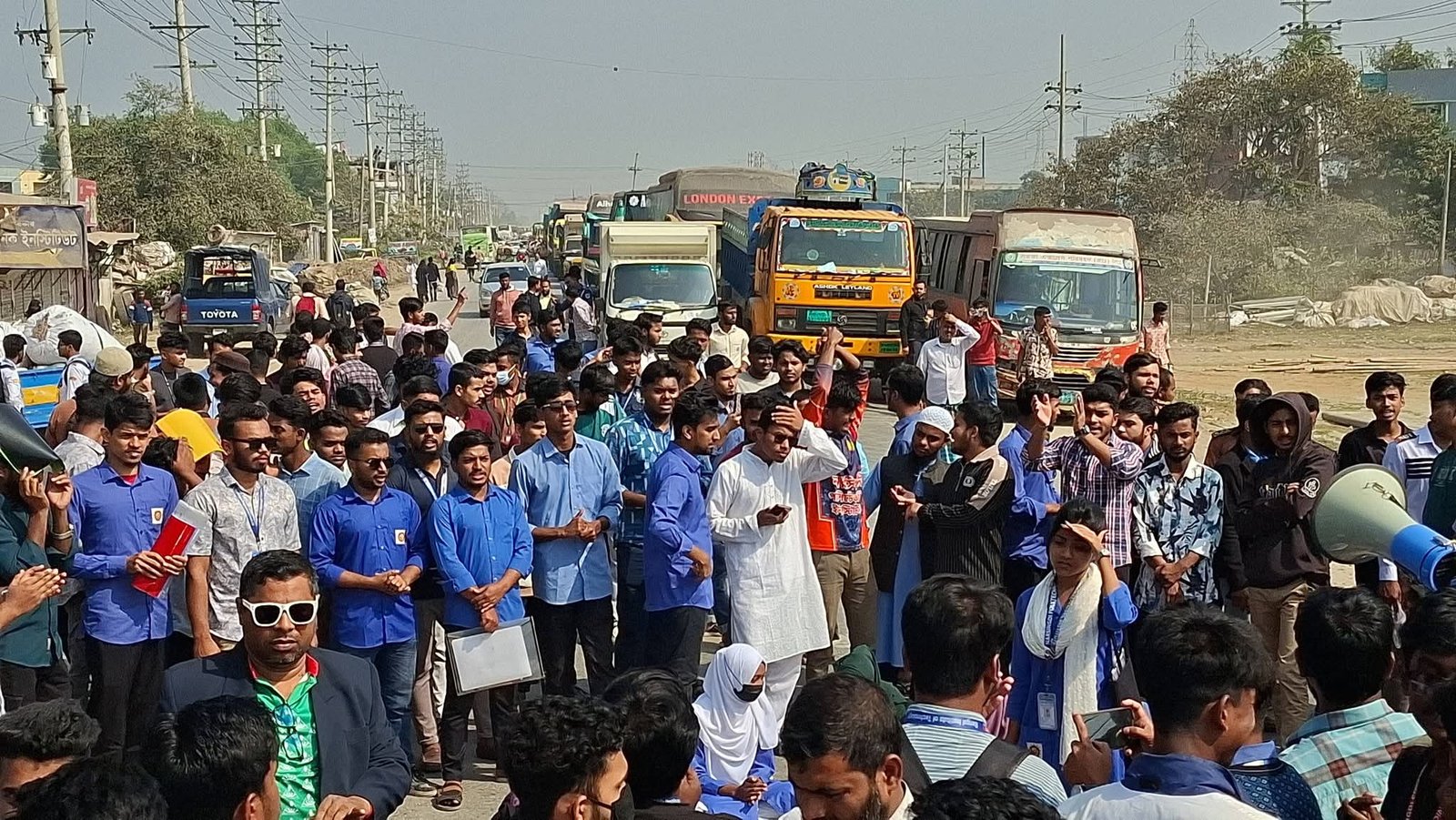 মঙ্গলবার (৩ ফেব্রুয়ারি) সকাল থেকে নরসিংদী সদর উপজেলার সাহেপ্রতাব এলাকার পুলিশ লাইন্স সড়কে অবস্থান নেন শিক্ষার্থীরা। এতে ঢাকা–সিলেট মহাসড়কে যান চলাচল বন্ধ হয়ে পড়ে, ফলে সড়কের দুই পাশে দীর্ঘ যানজটের সৃষ্টি হয়। দুর্ভোগে পড়েন সাধারণ যাত্রী ও কর্মজীবী মানুষ।