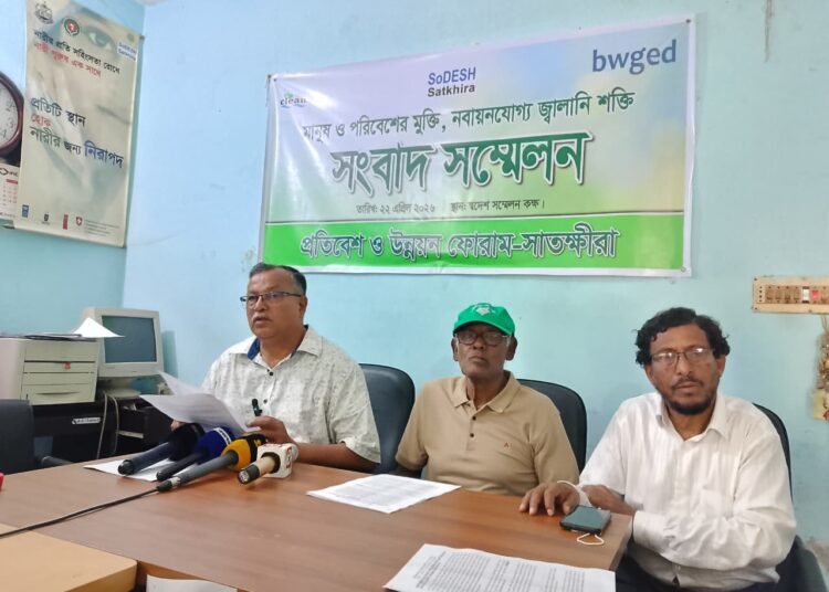 “জ্বালানি ঝুঁকির মুখে বাংলাদেশ” অস্থির বৈশ্বিক জ্বালানি সংকটে বিকল্প হিসেবে নবায়নযোগ্য জ্বালানীতে স্বনির্ভরতা অর্জনই সমাধানের লক্ষ্যে সাতক্ষীরায় সংবাদ সম্মেলন অনুষ্ঠিত হয়েছে।