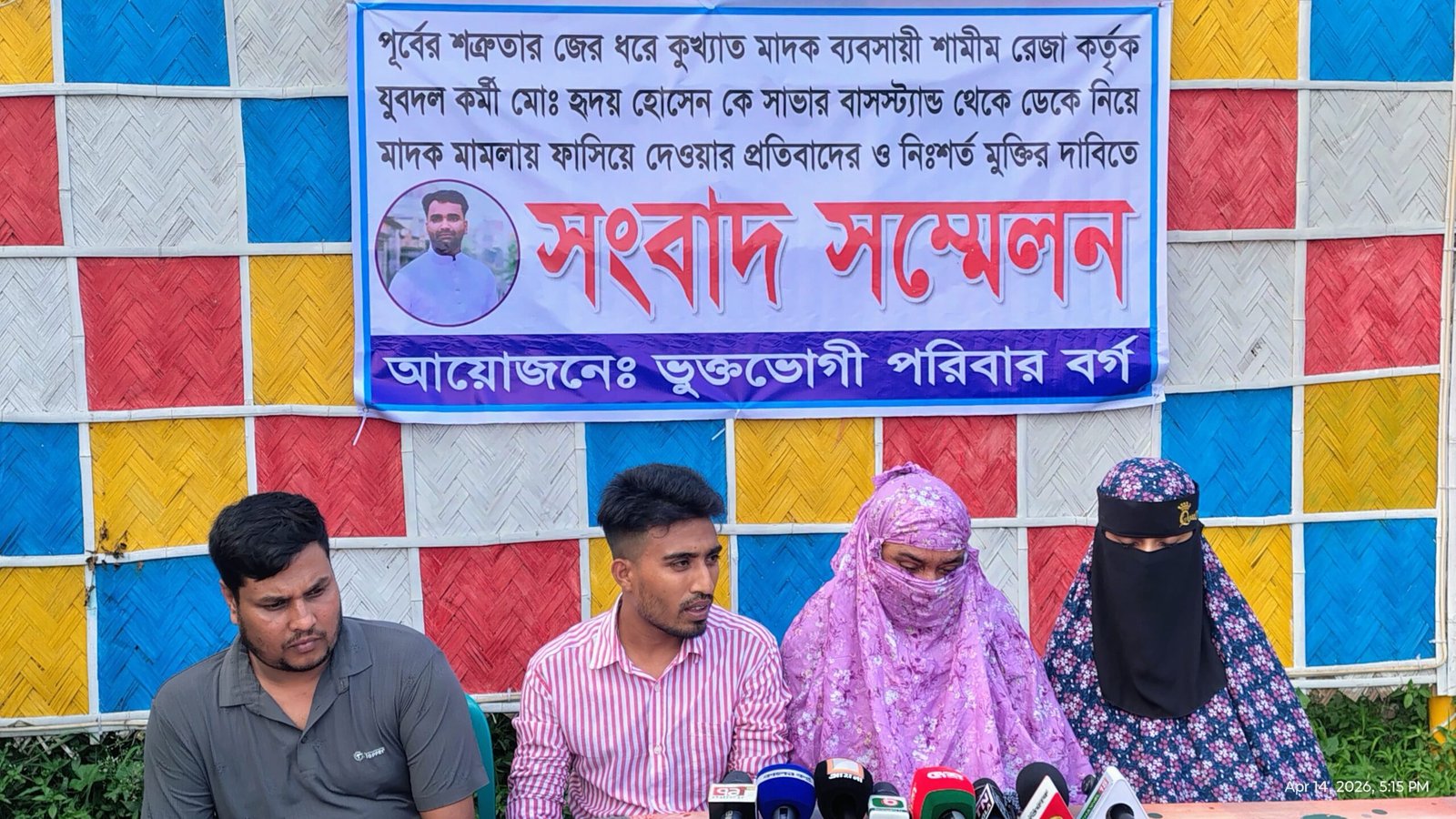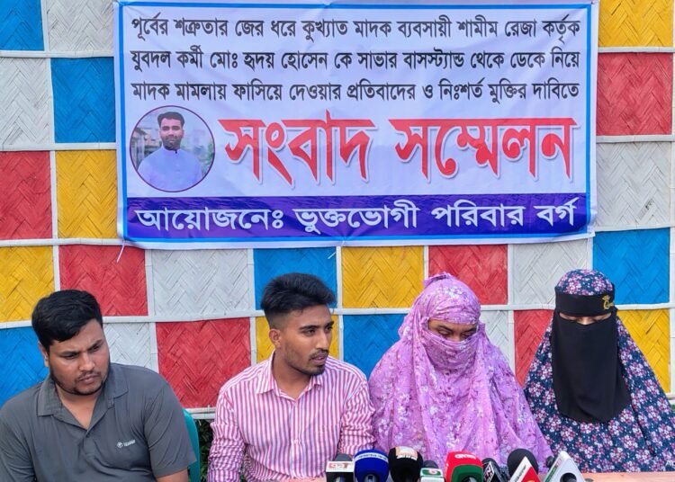 সাভারে পূর্ব শত্রুতার জের ধরে কুখ্যাত মাদক ব্যবসায়ী শামীম রেজার বিরুদ্ধে যুবদল কর্মী হৃদয় হোসেনকে মাদক মামলায় ফাঁসানোর অভিযোগ উঠেছে। এ ঘটনায় প্রতিবাদ ও হৃদয়ের নিঃশর্ত মুক্তির দাবিতে সংবাদ সম্মেলন করেছে ভুক্তভোগী পরিবার।