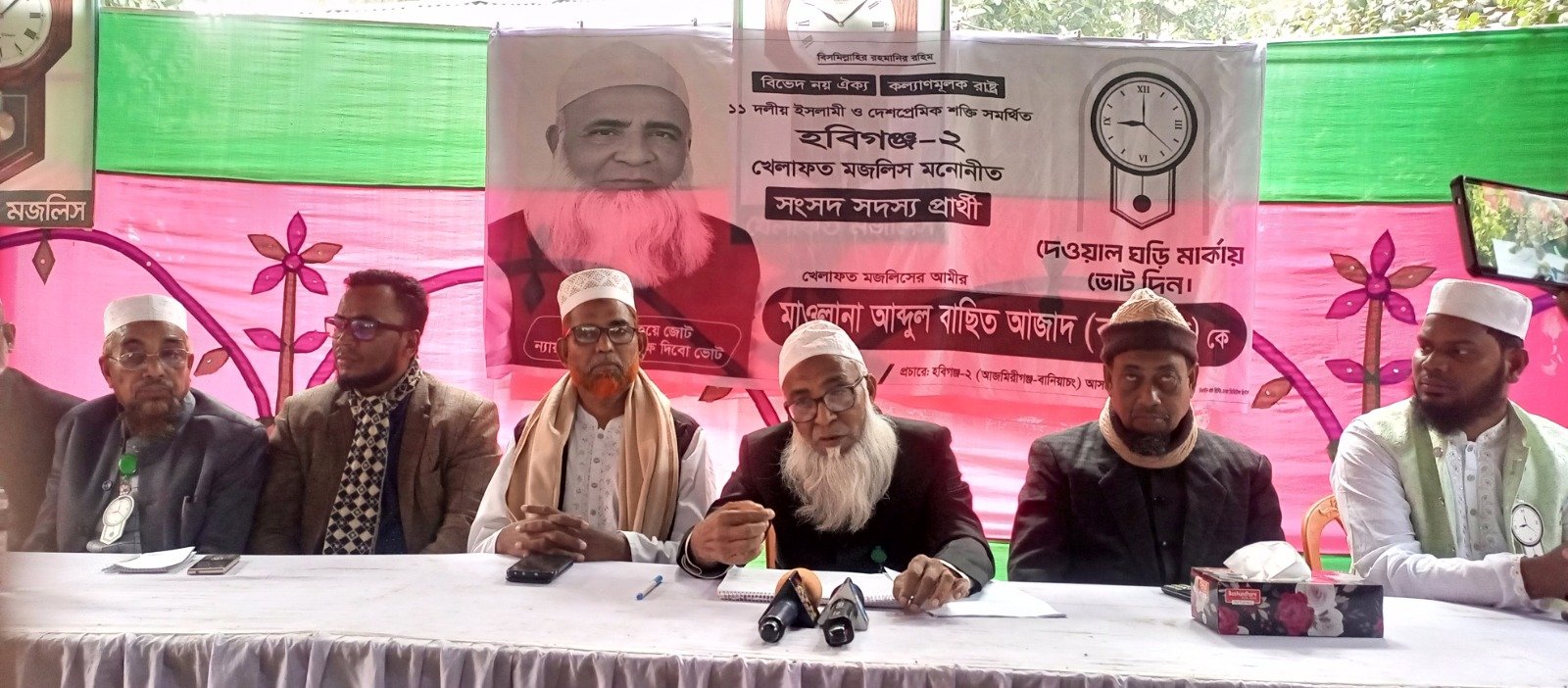 হবিগঞ্জ-২ (বানিয়াচং-আজমিরিগঞ্জ) আসনের ১১ দলীয় জোটের প্রার্থী ও খেলাফত মজলিসের কেন্দ্রীয় আমির মাওলানা আব্দুল বাছিতআজাদ সাংবাদিক সম্মেলন করেছেন। তিনি নির্বাচিত হলে এ আসনের সার্বিক উন্নয়নে কার্যকর পদক্ষেপ গ্রহণের প্রতিশ্রুতি দেন।