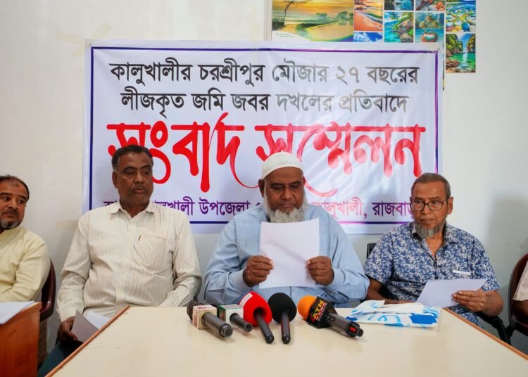 সম্প্রতী ওই জমি জোর করে দখল করায় মঙ্গলবার ৬ কৃষক কালুখালী উপজেলা প্রেসক্লাবে সংবাদ সম্মেলন করেছে। সংবাদ সম্মলনে লিখিত বক্তব্য পাঠ করেন কৃষক আব্দুস সাত্তার। লিখিত বক্তব্যে তিনি জানান, আমরা কালুখালী উপজেলার কুষ্টিয়াডাঙ্গী গ্রামের বাসিন্দা।