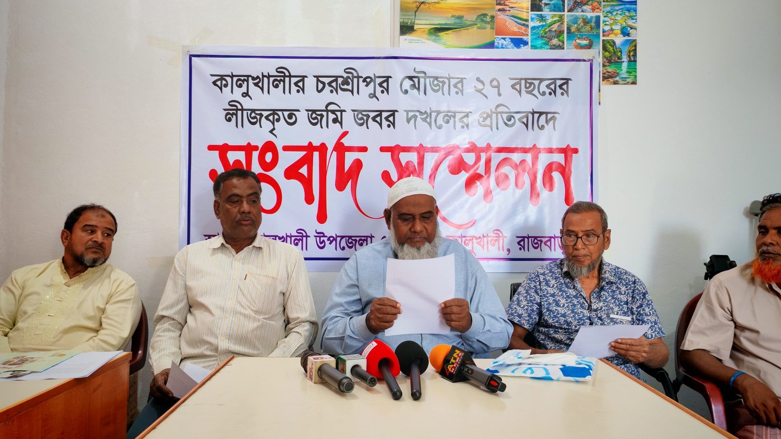 আমারা পাশ্ববর্তী চরশ্রীপুর মৌজার বিএস ৩৭০ ও ৪৪০ দাগের ২.৮২ একর জমি দীর্ঘ ২৭ বছর লীজ গ্রহনের মাধ্যমে ভোগ করছি। চলতি বছরেও আমরা ওই জমির লীজ গ্রহন করেছি। কিন্তু লোকমান,ইমরান,সাগর,সাহেব আলী,তুহিন, জুয়েল,সিহাব,রাসেল ওরফে আগুনসহ ১০/১২ জন দুর্বত্ত আমাদের লীজকৃত জমি জোর করে দখল করে নিয়েছে। আমরা বিষয়টি কালুখালী উপজেলা ভূমি কর্মকর্তা ও কালুখালী থানা পুলিশকে লিখিত ভাবে অবগত করেছি।