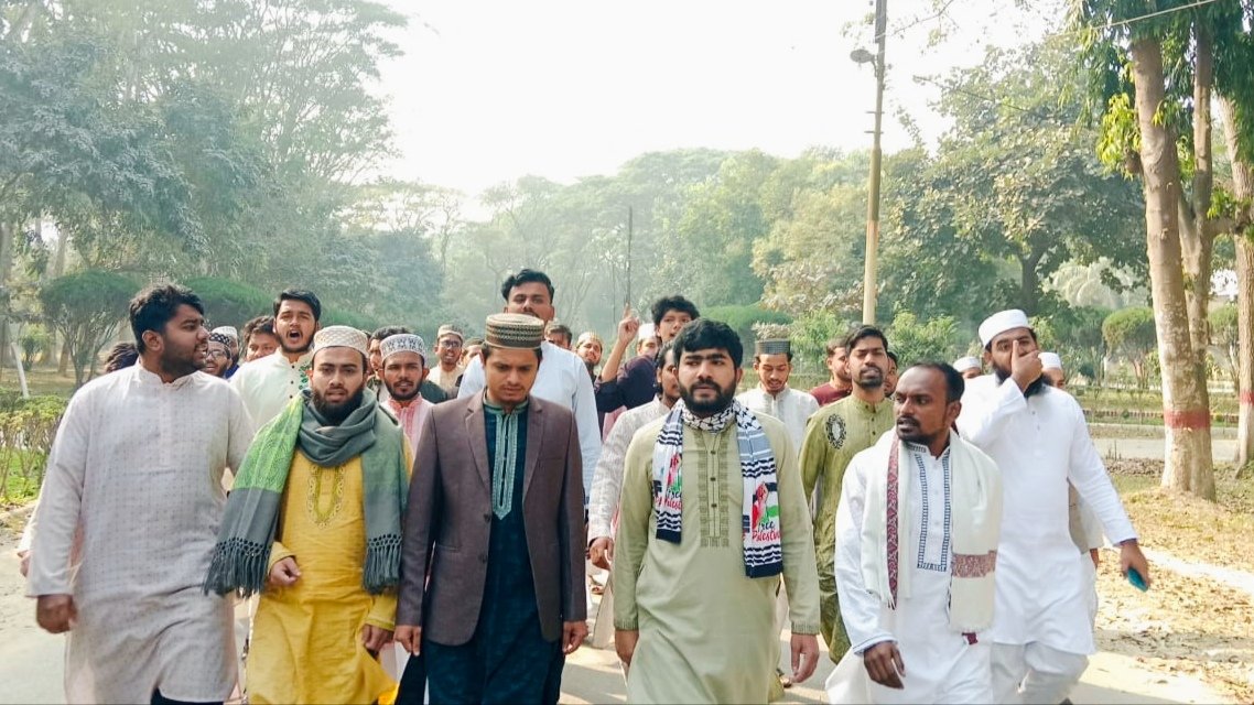 ইসলামী বিশ্ববিদ্যালয়ের (ইবি) শিক্ষার্থী সাজিদ আব্দুল্লাহ, ইনকিলাব মঞ্চের মুখপাত্র ও ঢাকা-৮ আসনের স্বতন্ত্র এমপি প্রার্থী শহীদ শরিফ ওসমান হাদি এবং ঢাকা মহানগর উত্তর স্বেচ্ছাসেবক দলের সাবেক সাধারণ সম্পাদক আজিজুর রহমান মুছাব্বির হত্যার বিচারের দাবিতে বিক্ষোভ মিছিল করেছে ইবি শিক্ষার্থীরা। শুক্রবার (৯ জানুয়ারি) জুমার নামাজের পর বিশ্ববিদ্যালয়ের কেন্দ্রীয় মসজিদ চত্বর থেকে বিক্ষোভ মিছিলটি শুরু হয়। মিছিলটি ক্যাম্পাসের বিভিন্ন গুরুত্বপূর্ণ সড়ক প্রদক্ষিণ শেষে বিশ্ববিদ্যালয়ের প্রধান ফটকে গিয়ে সমাবেশে মিলিত হয়।