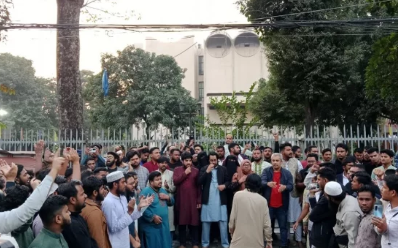 শুক্রবার বিকেল পৌনে ৫টার দিকে জাতীয় জাদুঘরের সামনের সড়কে বিক্ষোভ শুরু করেন তারা। বিক্ষোভকারীরা হামলাকারীদের ২৪ ঘণ্টার মধ্যে গ্রেপ্তারের দাবি জানান। তাদের অভিযোগ, এই হামলার পেছনে ‘ভারতীয় আধিপত্যবাদী ও ফ্যাসিস্ট শক্তির’ প্রভাব রয়েছে। দিনদুপুরে ‘জুলাই যোদ্ধা’র ওপর হামলার ঘটনায় তারা তীব্র ক্ষোভ প্রকাশ করেন।