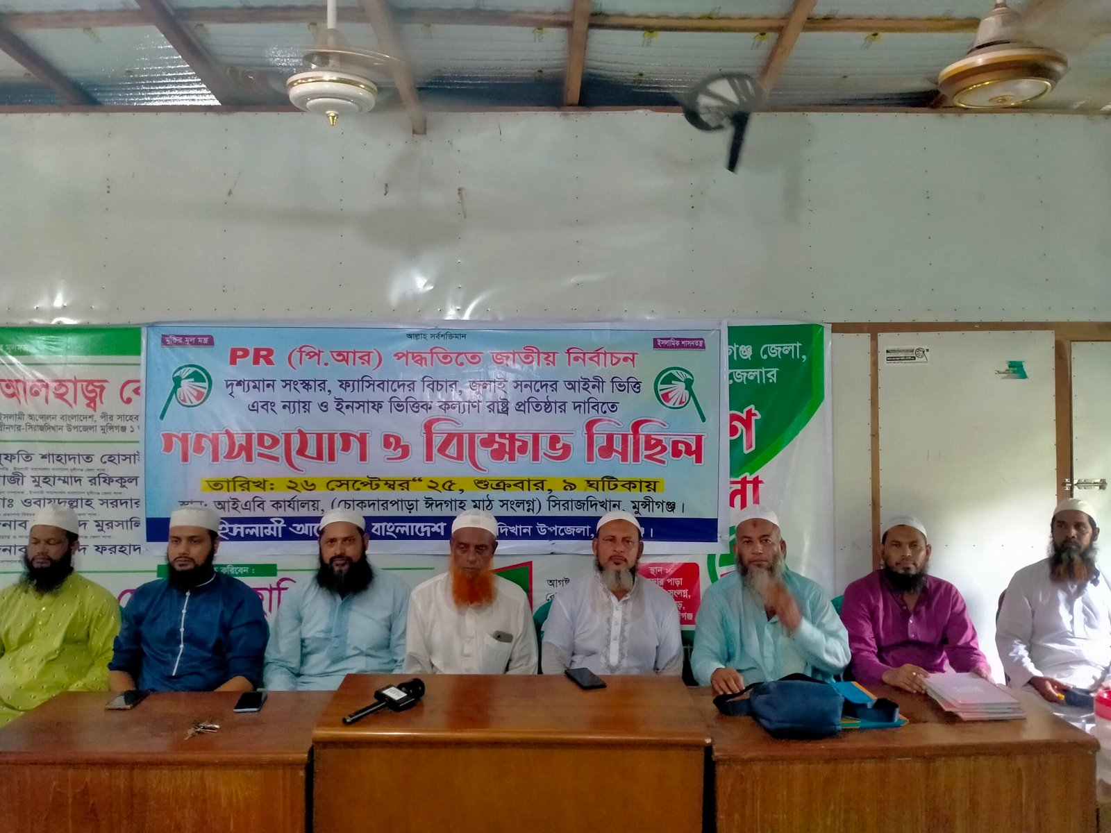 মুন্সীগঞ্জের সিরাজদিখানে ইসলামী আন্দোলন বাংলাদেশ উপজেলা শাখার উদ্যোগে ৫ দফা দাবী আদায়ের লক্ষ্যে বিক্ষোভ ও সমাবেশ অনুষ্ঠিত হয়েছে।