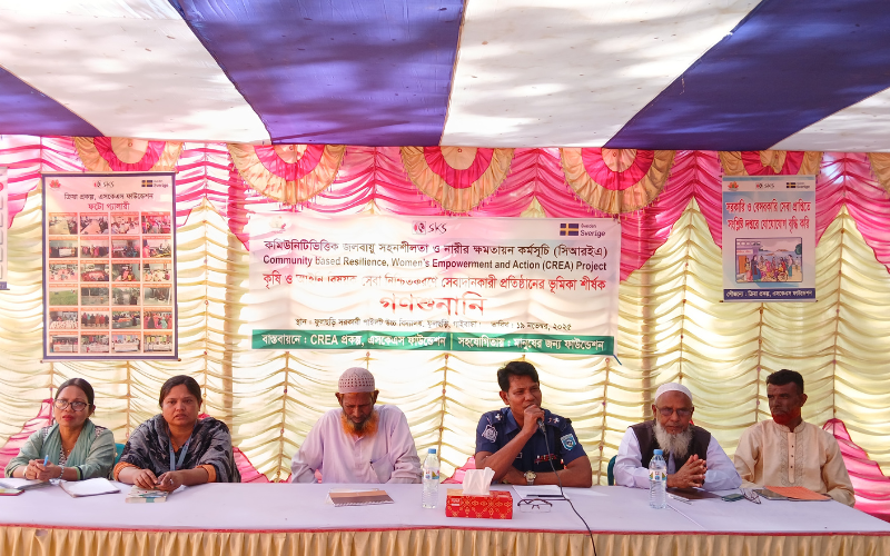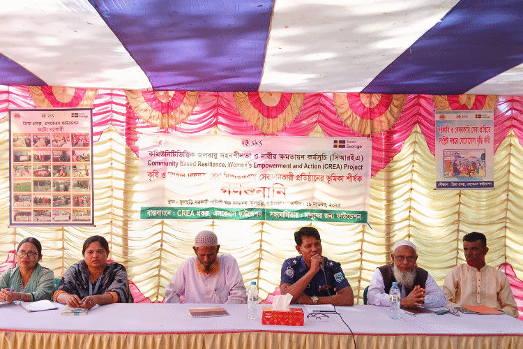 মানুষের জন্য ফাউন্ডেশনের সহযোগিতায়, সুইডেন সরকারের অর্থায়নে এবং এসকেএস ফাউন্ডেশন কর্তৃক বাস্তবায়িত ‘কমিউনিটিভিত্তিক জলবায়ু সহনশীলতা ও নারীর ক্ষমতায়ন কর্মসূচি (সিআরইএ)’ প্রকল্পের উদ্যোগে আয়োজিত এ গণশুনানিতে কৃষি, আইন, সামাজিক নিরাপত্তা, নারী অধিকারসহ সেবা–সংক্রান্ত বিভিন্ন জটিলতা ও চ্যালেঞ্জ নিয়ে সাধারণ মানুষের মতামত, সেবা প্রাপ্তিতে বাঁধা/অসুবিধা সমূহ তুলে ধরা এবং সমাধান কৌশল বিষয়ে আলোকপাত করা হয়।