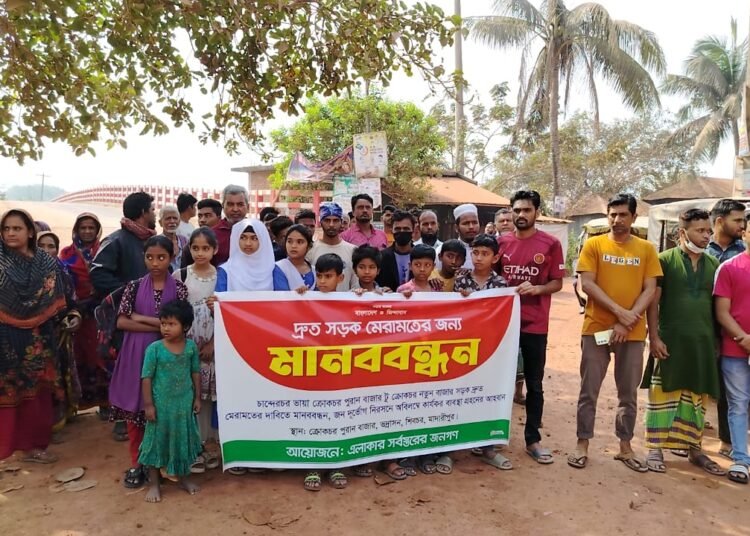 মাদারীপুরের শিবচরে সংস্কারের নামে একটি গুরুত্বপূর্ণ সড়ক এখন যেন মরণফাঁদে পরিণত হয়েছে। নিম্নমানের সামগ্রী ব্যবহার, চরম ধীরগতি আর ঠিকাদারের উদাসীনতায় গত ১৪ মাস ধরে অবর্ণনীয় দুর্ভোগ পোহাচ্ছেন হাজার হাজার মানুষ। শনিবার (২১ ফেব্রুয়ারি) এই অনিয়মের প্রতিবাদে এবং দ্রুত সংস্কারের দাবিতে মানববন্ধন কর্মসূচি পালন করেছে বিক্ষুব্ধ এলাকাবাসী।