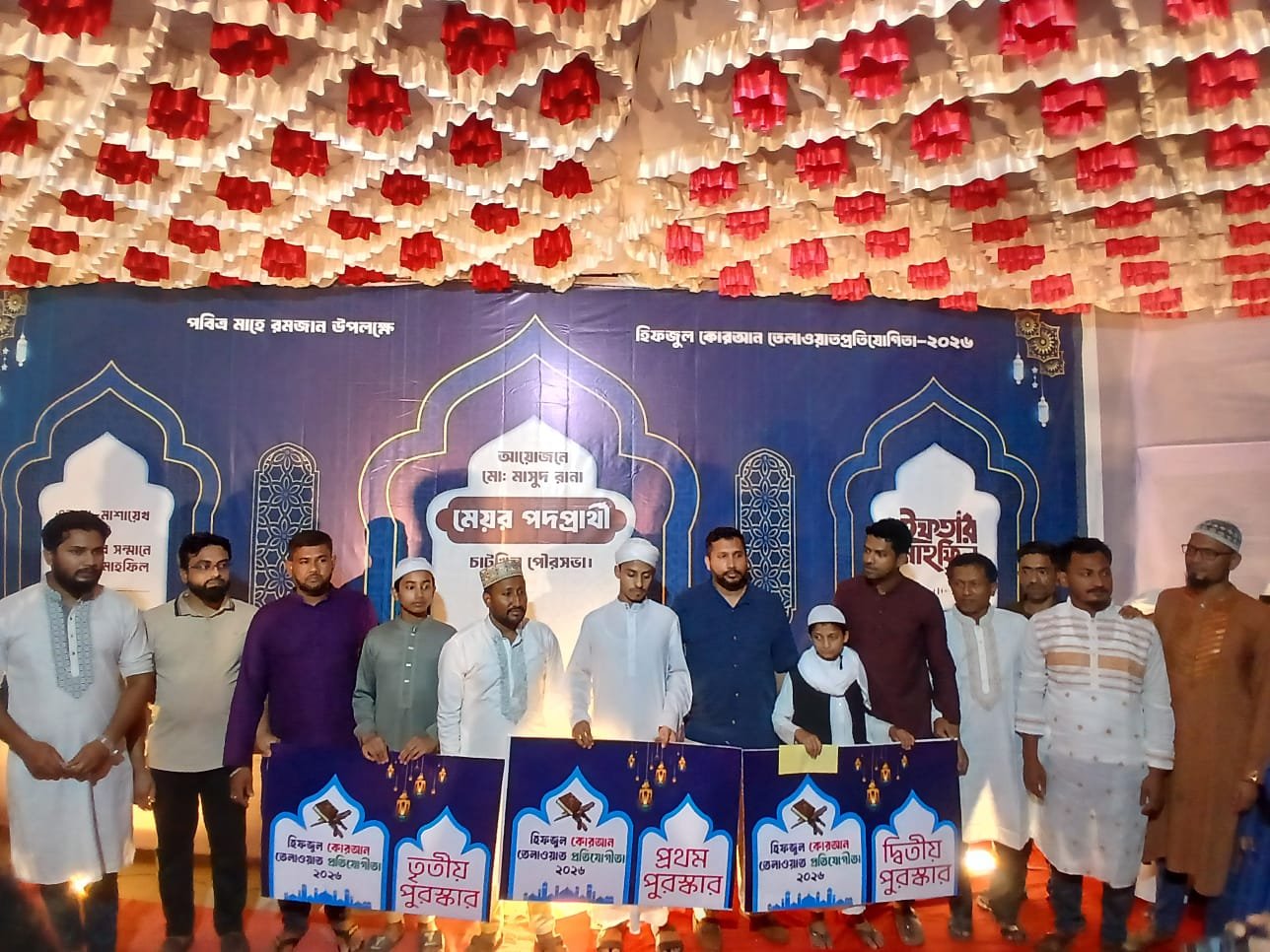 নোয়াখালীর চাটখিল পৌরসভায় মেয়র প্রার্থী মোঃ মাসুদ রানার উদ্যোগে পবিত্র মাহে রমজান উপলক্ষে হিফজুল কোরআন তেলাওয়াত প্রতিযোগিতা-২০২৬ অনুষ্ঠিত হয়েছে। এতে চাটখিল উপজেলার বিভিন্ন মাদ্রাসার প্রায় ২০ জন প্রতিযোগী অংশগ্রহণ করেন।