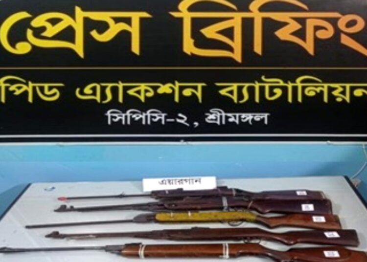 মৌলভীবাজারে র‍্যাবের অভিযানে ৫ এয়ারগান উদ্ধার