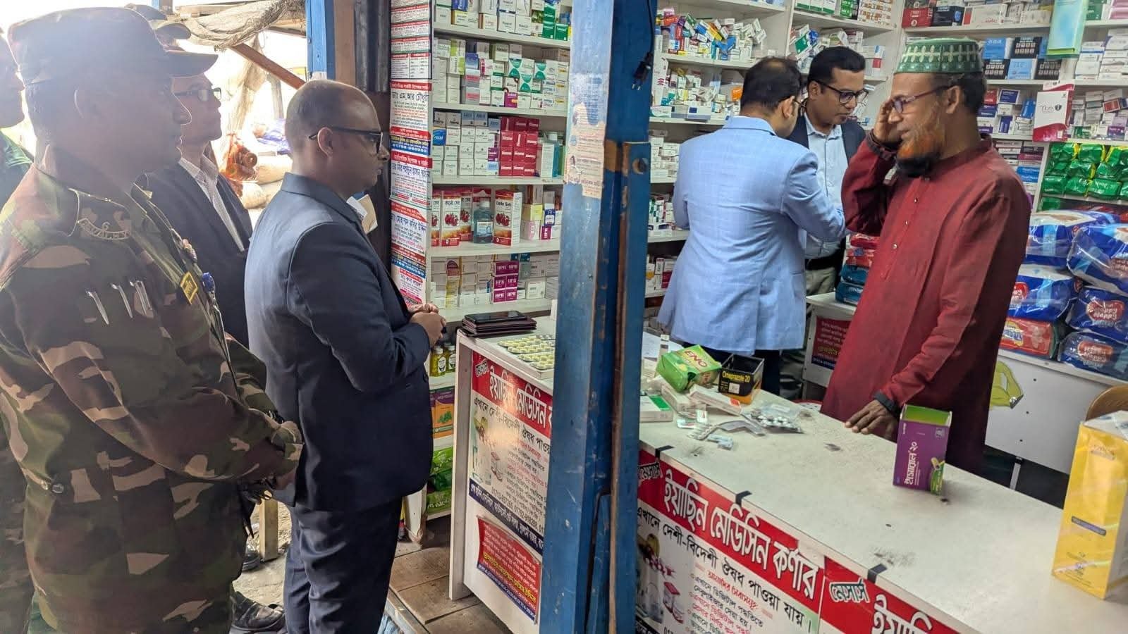 বাকেরগঞ্জে লাইসেন্সবিহীন ফার্মেসিতে অভিযান, ৪ প্রতিষ্ঠানে জরিমানা