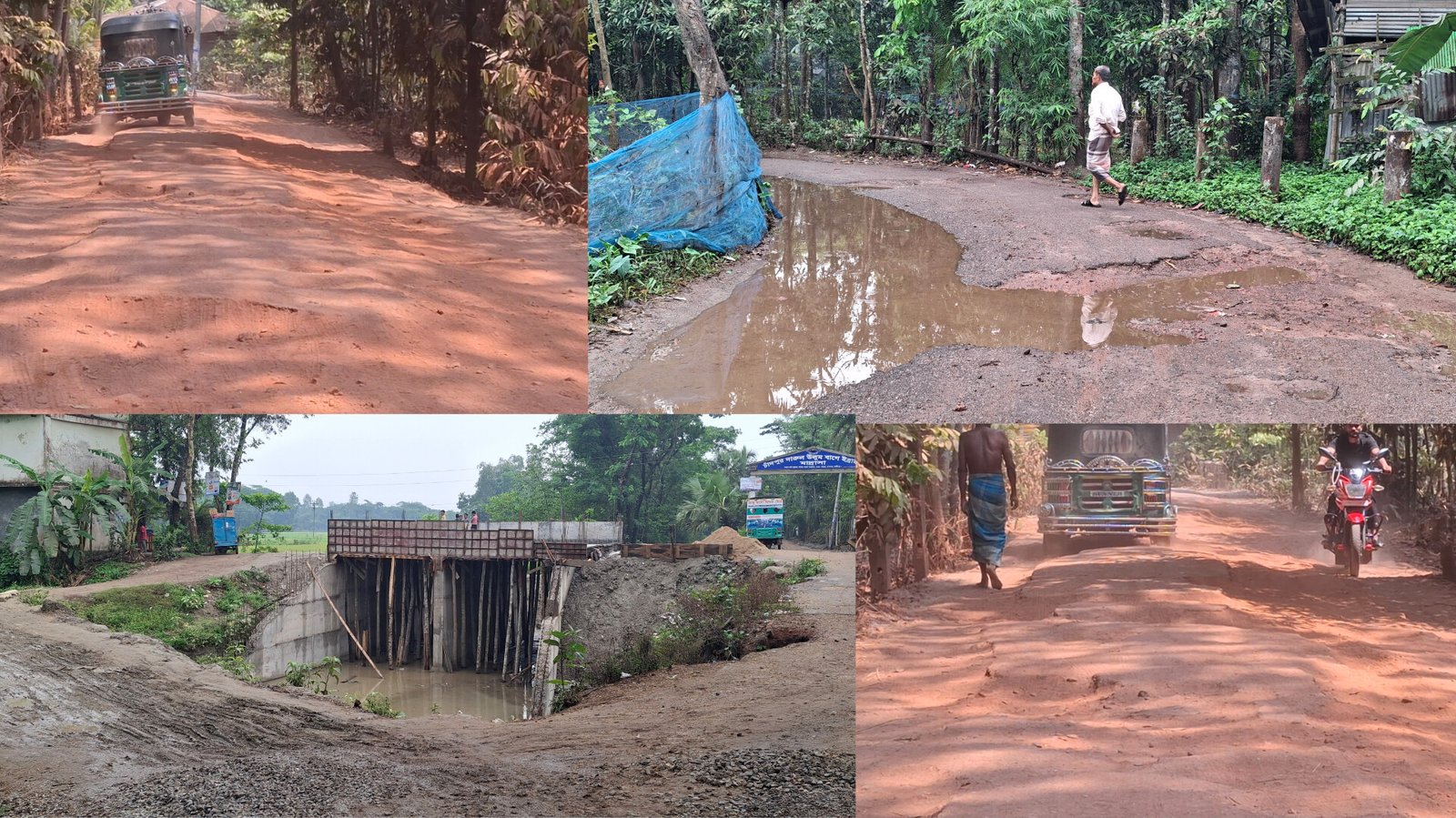 স্থানীয়দের অভিযোগ, সড়কটি দীর্ঘদিন ধরে ভাঙাচোরা ও খানাখন্দে ভরা থাকায় যাতায়াত অত্যন্ত কষ্টকর হয়ে পড়েছে। সামান্য বৃষ্টি হলেই সৃষ্টি হয় কাদার স্তর, আর শুষ্ক মৌসুমে উড়তে থাকে ধুলাবালি। এতে পথচারী, শিক্ষার্থী ও যানবাহন চালকদের চরম দুর্ভোগ পোহাতে হচ্ছে প্রতিনিয়ত।