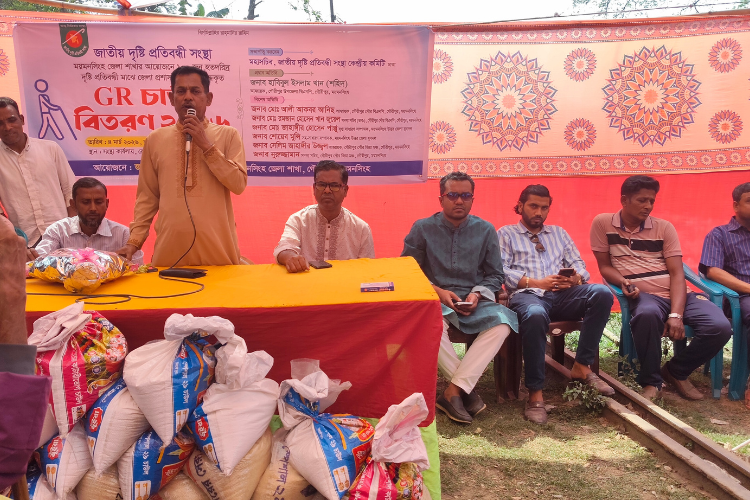 অনুষ্ঠানে সভাপতিত্ব করেন জাতীয় দৃষ্টি প্রতিবন্ধী সংস্থার ময়মনসিংহ জেলা শাখার সভাপতি মো. রাসেল মিয়া। স্বাগত বক্তব্য দেন সংগঠনের সাধারণ সম্পাদক মো. রিপন মিয়া।