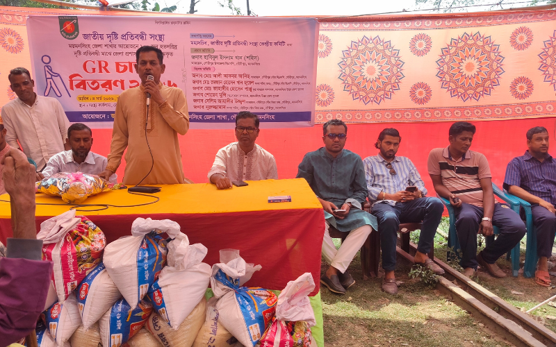 ময়মনসিংহের গৌরীপুরে জাতীয় দৃষ্টি প্রতিবন্ধী সংস্থার উদ্যোগে দৃষ্টি প্রতিবন্ধীদের মাঝে চাল বিতরণ করা হয়েছে।