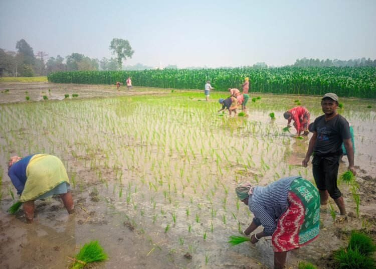 বীরগঞ্জে মাঠে মাঠে চলছে ধানের চারা রোপণ