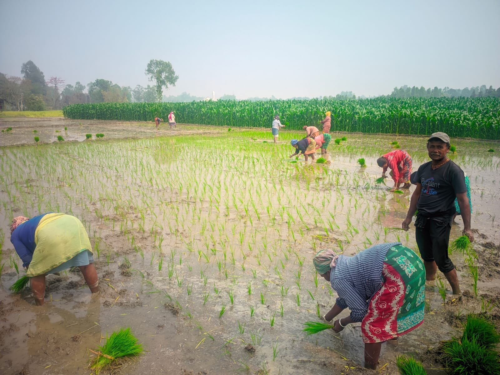 বীরগঞ্জে মাঠে মাঠে চলছে ধানের চারা রোপণ