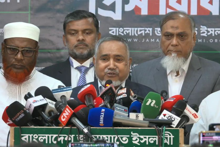 বৃহস্পতিবার দুপুরে মগবাজারে জামায়াতের কেন্দ্রীয় কার্যালয়ে ডাকা সংবাদ সম্মেলনে এ আহ্বান জানান দলের নায়েবে আমির ডা. সৈয়দ আবদুল্লাহ মোহাম্মদ তাহের। তিনি আরও দাবি করেন, অন্তর্বর্তী সরকারের অন্য উপদেষ্টা ড. খলিলুর রহমান ‘লন্ডন যড়যন্ত্রের’ মূল হোতা ছিলেন এবং পরবর্তীতে পররাষ্ট্রমন্ত্রী হয়েছেন।