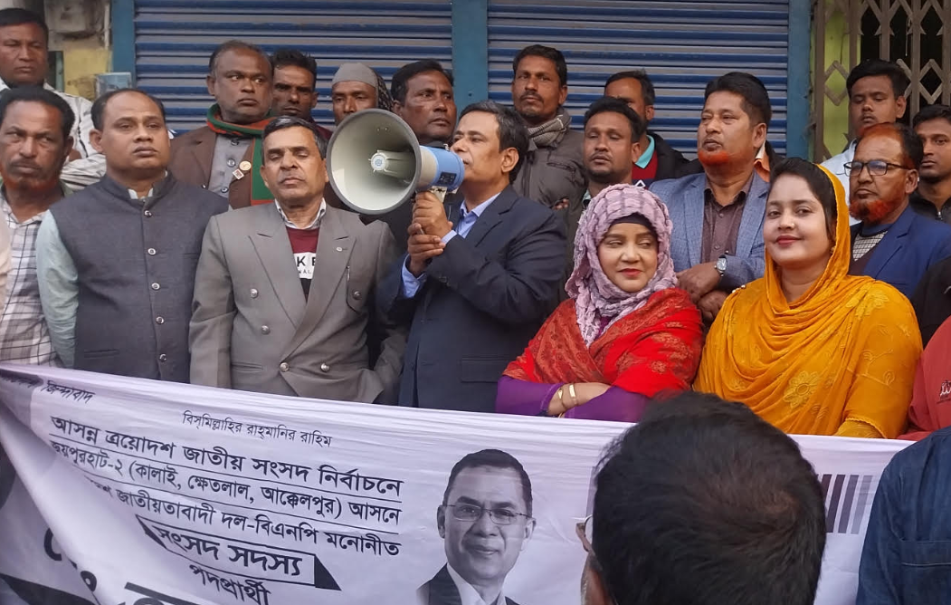 জয়পুরহাট-২ আসনে ধানের শীষের পক্ষে পথসভা ও মিছিল