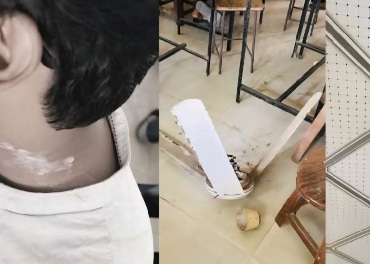 আহত ওই শিক্ষার্থীর নাম মুশরাকুল আলম ফারহাদ। জানা গেছে ক্লাস চলাকালে ফ্যানের পাখা তার ঘাড়ের ওপর পড়ে গেলে তিনি তাৎক্ষণিকভাবে আহত হন। পরে ক্লাসের শিক্ষকের সহায়তায় তাকে প্রাথমিক চিকিৎসা দেওয়া হয়।