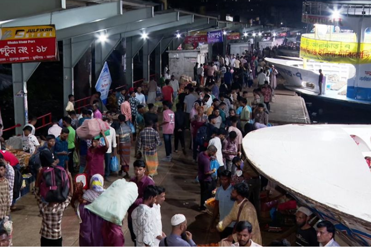 মঙ্গলবার (১৭ মার্চ) গভীর রাত থেকেই যাত্রীদের ঢল নামে টার্মিনাল এলাকায়। ভোর ৬টার প্রথম লঞ্চে নির্বিঘ্নে উঠতে অনেকেই রাতেই এসে অবস্থান নেন সদরঘাটে। কেউ কেউ সেখানেই সেহরি সেরে অপেক্ষা করেন ভোরের যাত্রার জন্য।