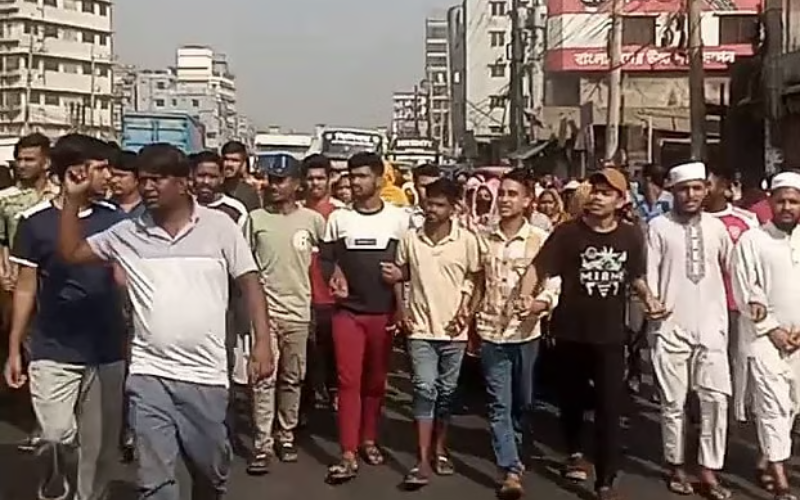 বেলা সাড়ে ১১টার দিকে শ্রমিকেরা সড়কের এক পাশ অবরোধ করে মিছিল করেন। এ সময় ‘বেতন চাই, বেতন চাই’ এবং ‘বকেয়া বেতন দিতে হবে’—স্লোগানে মুখর হয়ে ওঠে এলাকা। অবরোধের কারণে মহাসড়কে যান চলাচল পুরোপুরি বন্ধ না হলেও ধীরগতিতে চলতে থাকে, সৃষ্টি হয় যানজট।