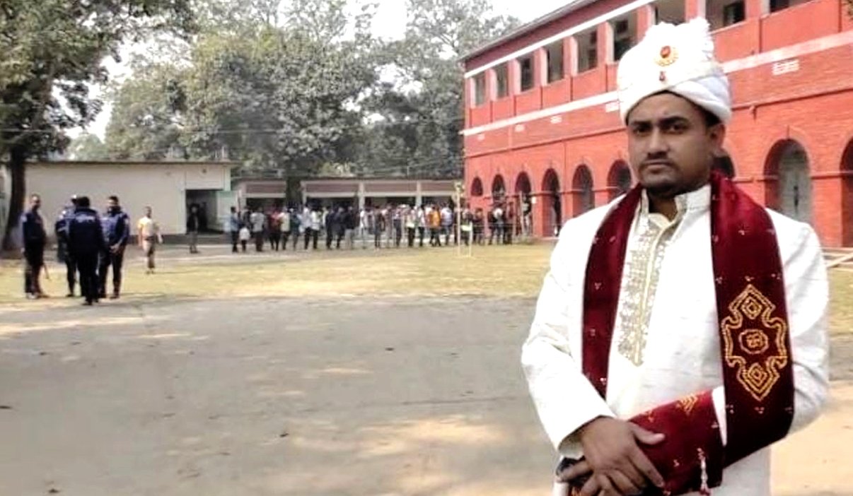 বিয়ের সাজে ভোট দিয়ে দৃষ্টান্ত স্থাপন করলেন সৈয়দপুরের সামিউল