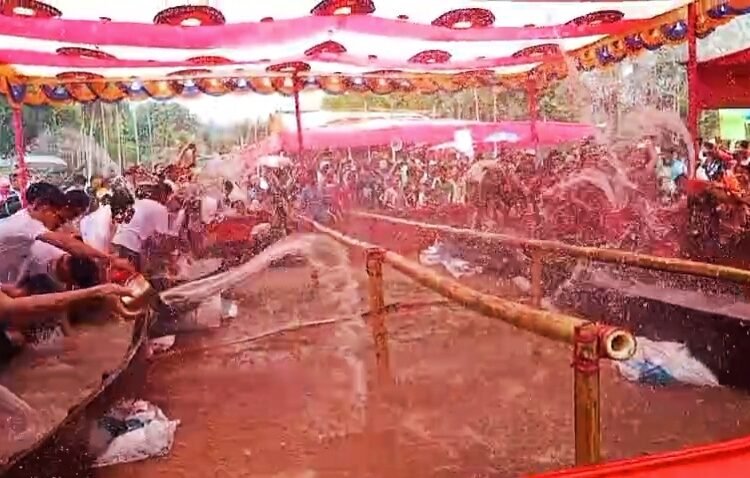 মন্ত্রী কর্তৃক উৎসবের আনুষ্ঠানিক উদ্বোধনের পরপরই শুরু হয় উৎসবের মূল আকর্ষণ ‘জলকেলি’। এ বছর উৎসবের বিশেষত্ব ছিল তরুণ-তরুণীদের স্বতঃস্ফূর্ত অংশগ্রহণ। মোট ১০৮টি দল এই জলকেলি প্রতিযোগিতায় অংশ নেয়। প্রতিটি দলে ১৮ জন তরুণ এবং ১৮ জন তরুণী একে অপরের গায়ে পবিত্র পানি ছিটিয়ে মৈত্রী ও ভ্রাতৃত্বের বন্ধনে আবদ্ধ হন। বাদ্যের তালে তালে তরুণ-তরুণীদের এই পানিবর্ষণ পুরো এলাকায় এক নান্দনিক আবহ তৈরি করে।
