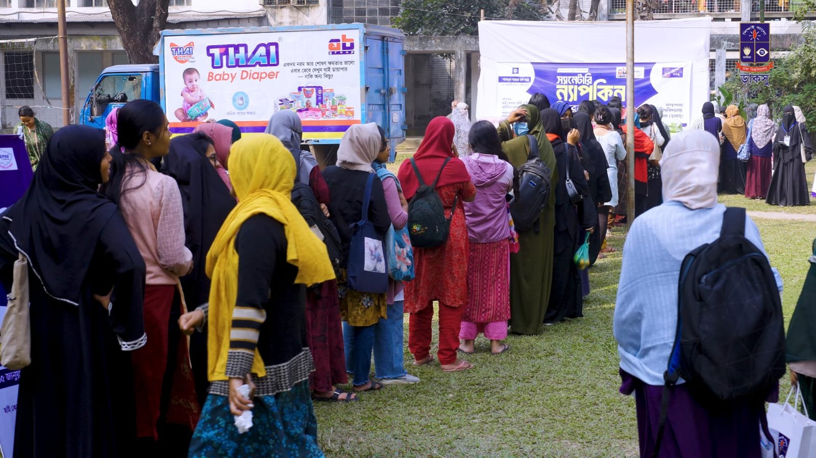 ❝সুস্থ নারী মানেই সুস্থ আগামী প্রজন্ম❞—এই প্রতিপাদ্যকে সামনে রেখে নারীদের স্বাস্থ্য সুরক্ষা ও সচেতনতা বৃদ্ধির লক্ষ্যে ঢাকা বিশ্ববিদ্যালয় কেন্দ্রীয় ছাত্র সংসদ (ডাকসু)-এর ব্যবস্থাপনায় এবং এবি গ্রুপের সৌজন্যে দিনব্যাপী স্যানিটারি ন্যাপকিন বিতরণ কার্যক্রমের আয়োজন করা হয়েছে। প্রোগ্রামটির বাস্তবায়নে ছিলেন শামসুন নাহার হল সংসদ।