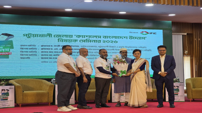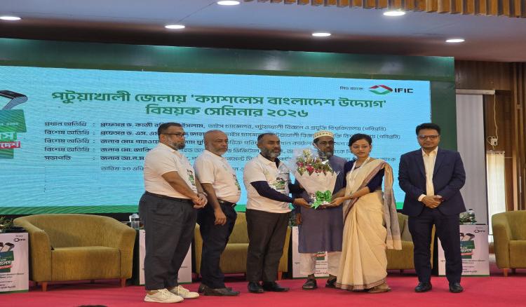 পটুয়াখালী বিজ্ঞান ও প্রযুক্তি বিশ্ববিদ্যালয়ে (পবিপ্রবি) ‘ক্যাশলেস বাংলাদেশ উদ্যোগ-২০২৬’ বিষয়ক সেমিনার অনুষ্ঠিত হয়েছে। ডিজিটাল লেনদেন সম্প্রসারণ ও আর্থিক নিরাপত্তা জোরদারের লক্ষ্যে সেমিনারটির আয়োজন করে আইএফআইসি ব্যাংক পিএলসি।