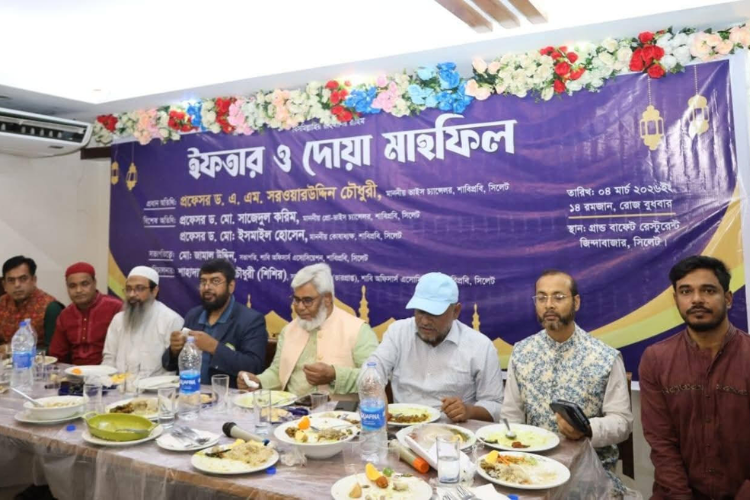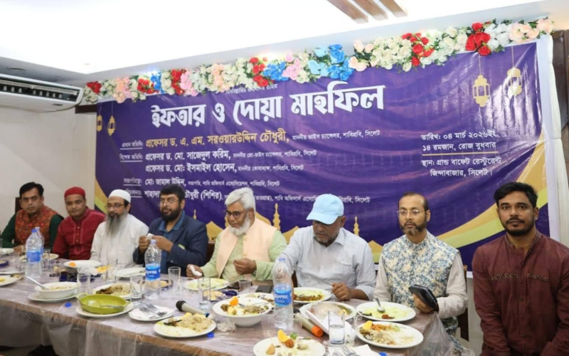 শাহজালাল বিজ্ঞান ও প্রযুক্তি বিশ্ববিদ্যালয়, সিলেট-এর অফিসার্স এসোসিয়েশন উদ্যোগে ইফতার ও দোয়া মাহফিল একটি অভিজাত রেস্টুরেন্টে অনুষ্ঠিত হয়। বুধবার (৪ মার্চ) ইফতার ও দোয়া মাহফিলে প্রধান অতিথি হিসেবে উপস্থিত ছিলেন বিশ্ববিদ্যালয়ের মাননীয় ভাইস চ্যান্সেলর অধ্যাপক ড. এ. এম. সরওয়ারউদ্দিন চৌধুরী।