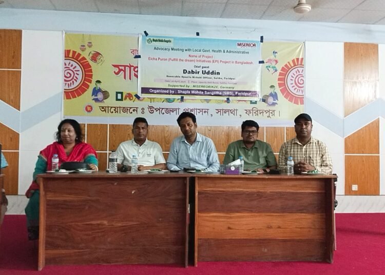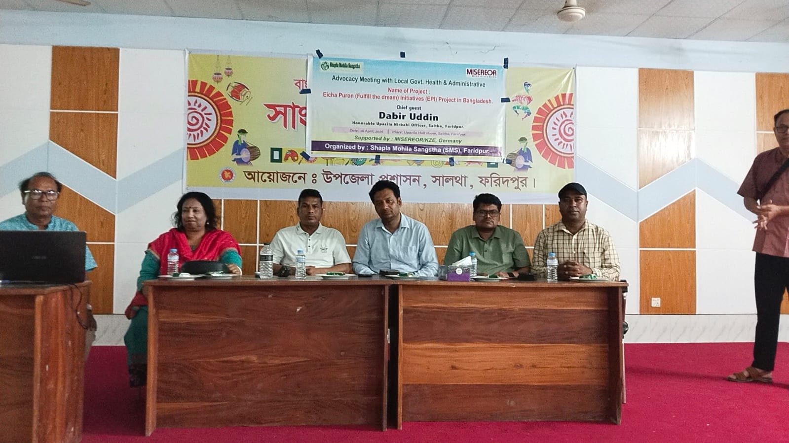 ফরিদপুরের সালথায় Eicha Puron (Fullfil the dream) Initiviatives in Bangladesh (EPI) কার্যক্রম সম্পর্কিত অবহিকরন সভা অনুষ্ঠিত হয়েছে। বৃহস্পতিবার (১৬ এপ্রিল) দুপুরে ফরিদপুর শাপলা মহিলা সংস্থার আয়োজনে সালথা উপজেলা পরিষদের সম্মেলন কক্ষে এই সভা অনুষ্ঠিত হয়।