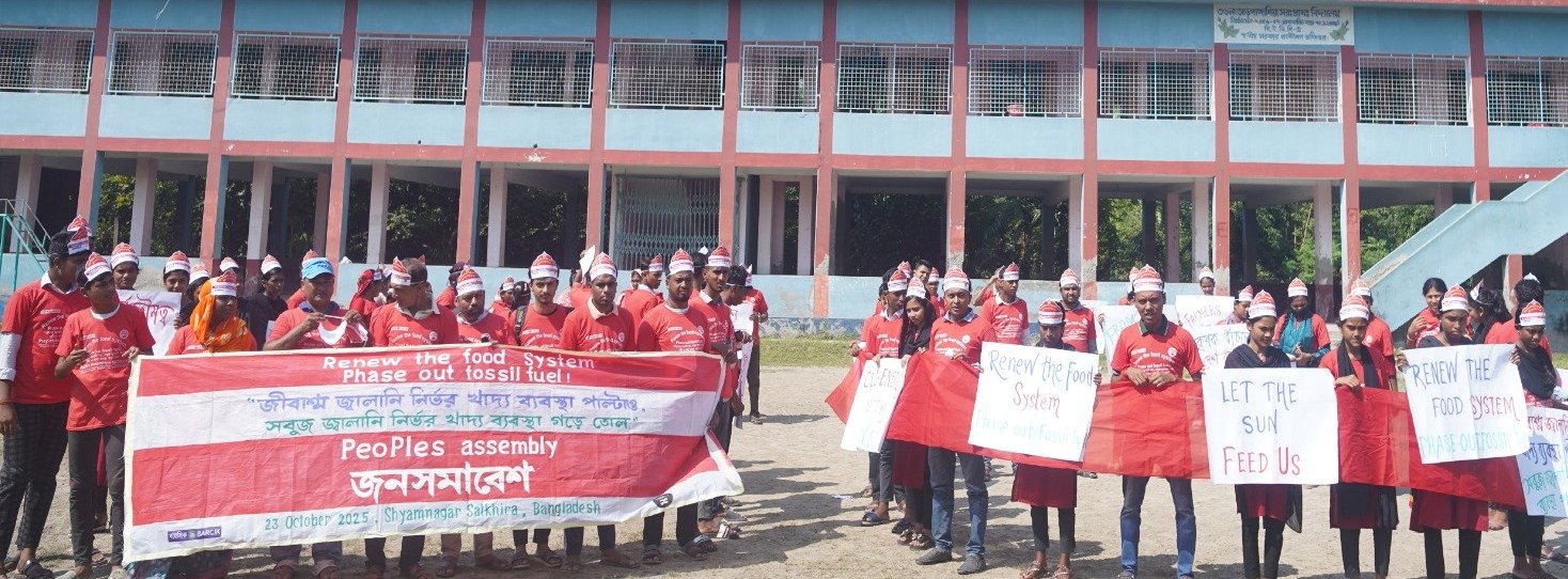 জীবাশ্ম জ্বালানিনির্ভর খাদ্যব্যবস্থা থেকে বেরিয়ে এসে সবুজ জ্বালানি ও প্রকৃতিনির্ভর টেকসই কৃষি গড়ে তোলার আহ্বানে সাতক্ষীরার শ্যামনগরে অনুষ্ঠিত হয়েছে জীবাশ্ম জ্বালানি নির্ভর খাদ্য ব্যবস্থা পাল্টাও, সবুজ জ্বালানি নির্ভর খাদ্য ব্যবস্থা গড়ে তোল” শীর্ষক জনসমাবেশ।