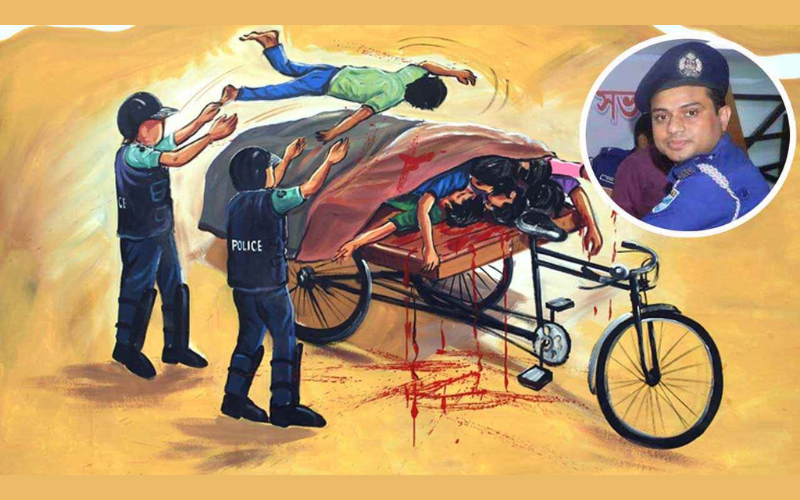 তিনি জানান, গুলিবিদ্ধদের লাশ ভ্যানে তুলে থানায় আনা হয়। এরপর ওসির নির্দেশে লাশগুলো পিকআপে তুলে নিয়ে পেট্রোল ঢেলে আগুন ধরিয়ে দেওয়া হয়। আবজালুলের ভাষ্য—“আমি কাছে গেলে তারা কথা বলা বন্ধ করে দেয়। তখন বুঝতে পারি, কোনো খারাপ কিছু ঘটতে যাচ্ছে। আমি ভয়ে সিভিল পোশাকে পালিয়ে যাই।”