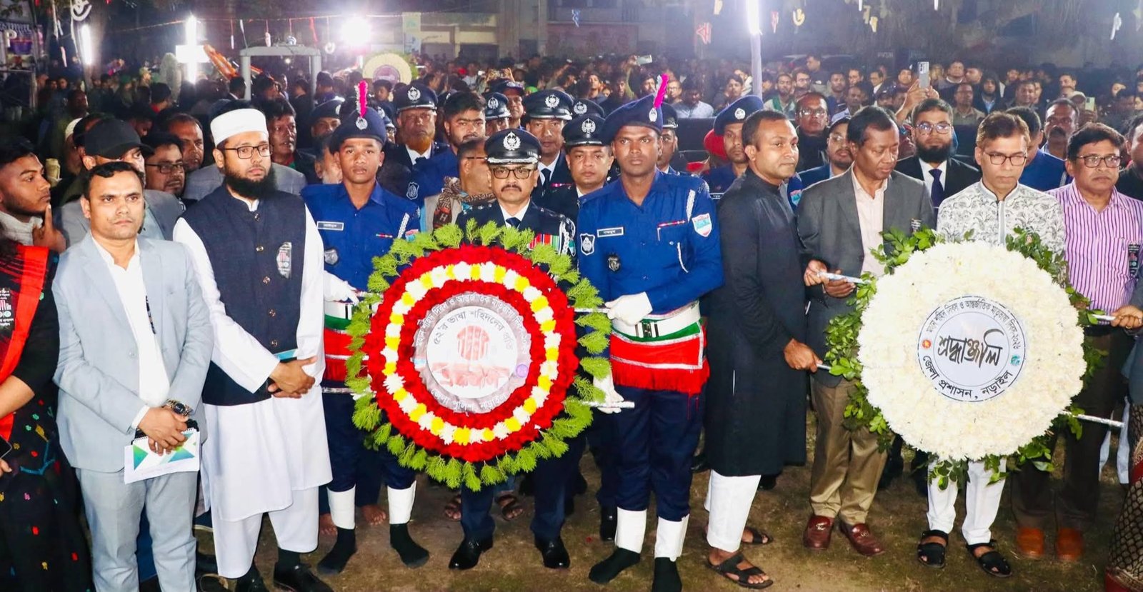 নড়াইলে একুশে ফেব্রুয়ারি শহীদ দিবস-উপলক্ষে জেলা পুলিশের বিনম্র শ্রদ্ধা নিবেদন। মহান শহীদ দিবস ও আন্তর্জাতিক মাতৃভাষা দিবস (২০২৬) উপলক্ষে নড়াইল জেলা শিল্পকলা একাডেমির মাঠ প্রাঙ্গণে অবস্থিত শহিদ মিনারে।