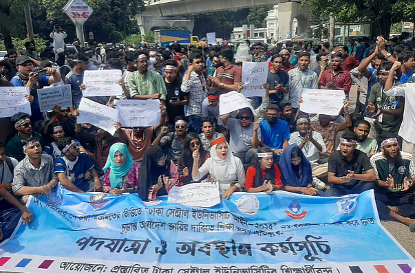 ঢাকার সাতটি বড় সরকারি কলেজ একীভূত করে প্রস্তাবিত ঢাকা সেন্ট্রাল ইউনিভার্সিটির চূড়ান্ত অধ্যাদেশ জারির দাবিতে আজ সোমবার রাজধানীর শিক্ষা ভবনসংলগ্ন রাস্তায় অবস্থান নিয়ে বিক্ষোভ করছেন ওই সাত কলেজের কয়েক শ শিক্ষার্থী। তাঁরা বলছেন, অধ্যাদেশ জারির ব্যবস্থা না হওয়া পর্যন্ত তাঁরা রাস্তা ছাড়বেন না।