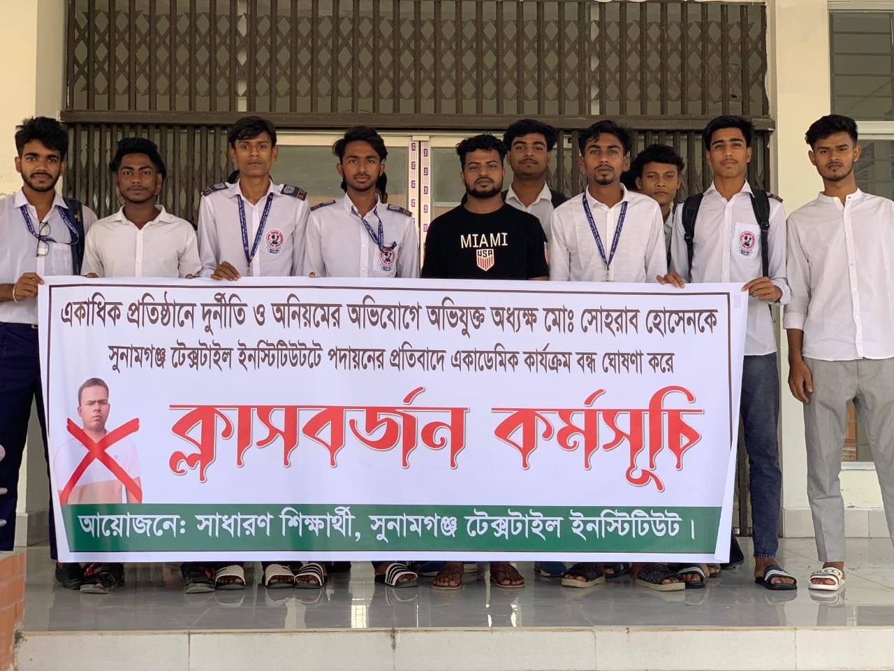 একাধিক প্রতিষ্ঠানে দুর্নীতি ও অনিয়মের অভিযোগে অভিযুক্ত অধ্যক্ষ মো. সোহরাব হোসেনকে সুনামগঞ্জ টেক্সটাইল ইনস্টিটিউটে পদায়নের প্রতিবাদে ক্লাস বর্জন করে বিক্ষোভ মিছিল করেছেন শিক্ষার্থীরা।