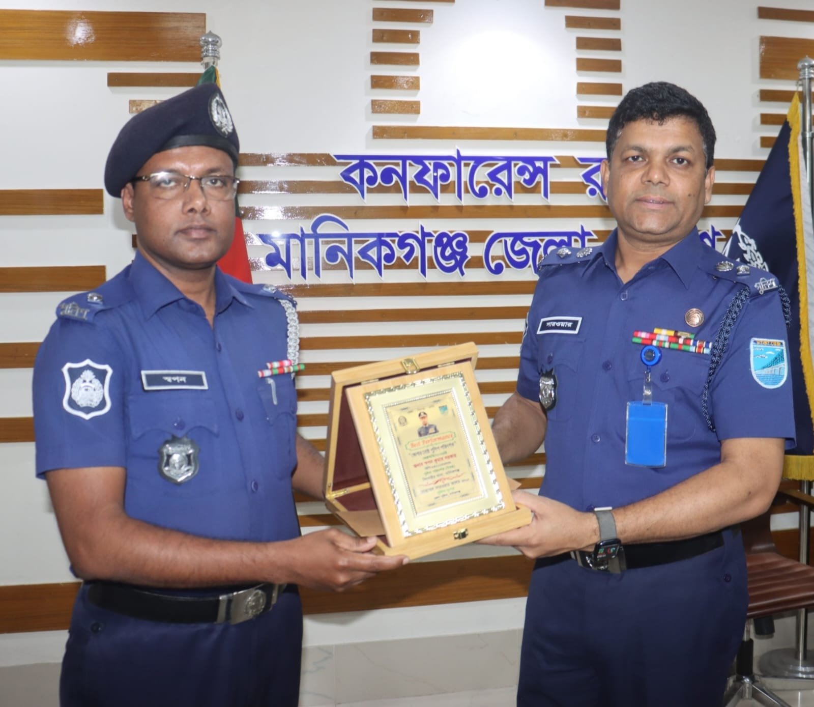 রবিবার (২৯ মার্চ) দুপুর ১ টার দিকে মানিকগঞ্জ পুলিশ সুপার কর্তৃক আয়োজিত মাসিক অপরাধ সভায় জেলার পুলিশ সুপার মোহাম্মদ সারোয়ার হোসেন জেলার শ্রেষ্ঠ পুলিশ পরিদর্শক স্বপন কুমার সরকারের হাতে এ পুরস্কার তুলে দেন। পুরস্কার বিতরণী অনুষ্ঠানে জেলা পুলিশের ঊর্ধ্বতন বিভিন্ন কর্মকর্তা উপস্থিত ছিলেন।