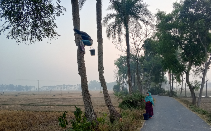 দিনাজপুর সদরের দক্ষিণ গোবিন্দপুর গ্রাম শীত এলেই এক ভিন্ন রূপে ধরা দেয়। গ্রামের পাকা রাস্তার দুই পাশে সারি সারি খেজুর গাছ যেন শীতের আগমনী বার্তা দেয়। ভোরের কুয়াশা ভেদ করে গাছিরা গাছে ওঠেন, কেটে দেন খেজুর গাছের মাথা, মাটির হাঁড়িতে ঝরে পড়ে মিষ্টি রস। এই খেজুরের রস শুধু শীতকালীন ঐতিহ্যই নয়, অনেক পরিবারের জীবিকার প্রধান অবলম্বনও।