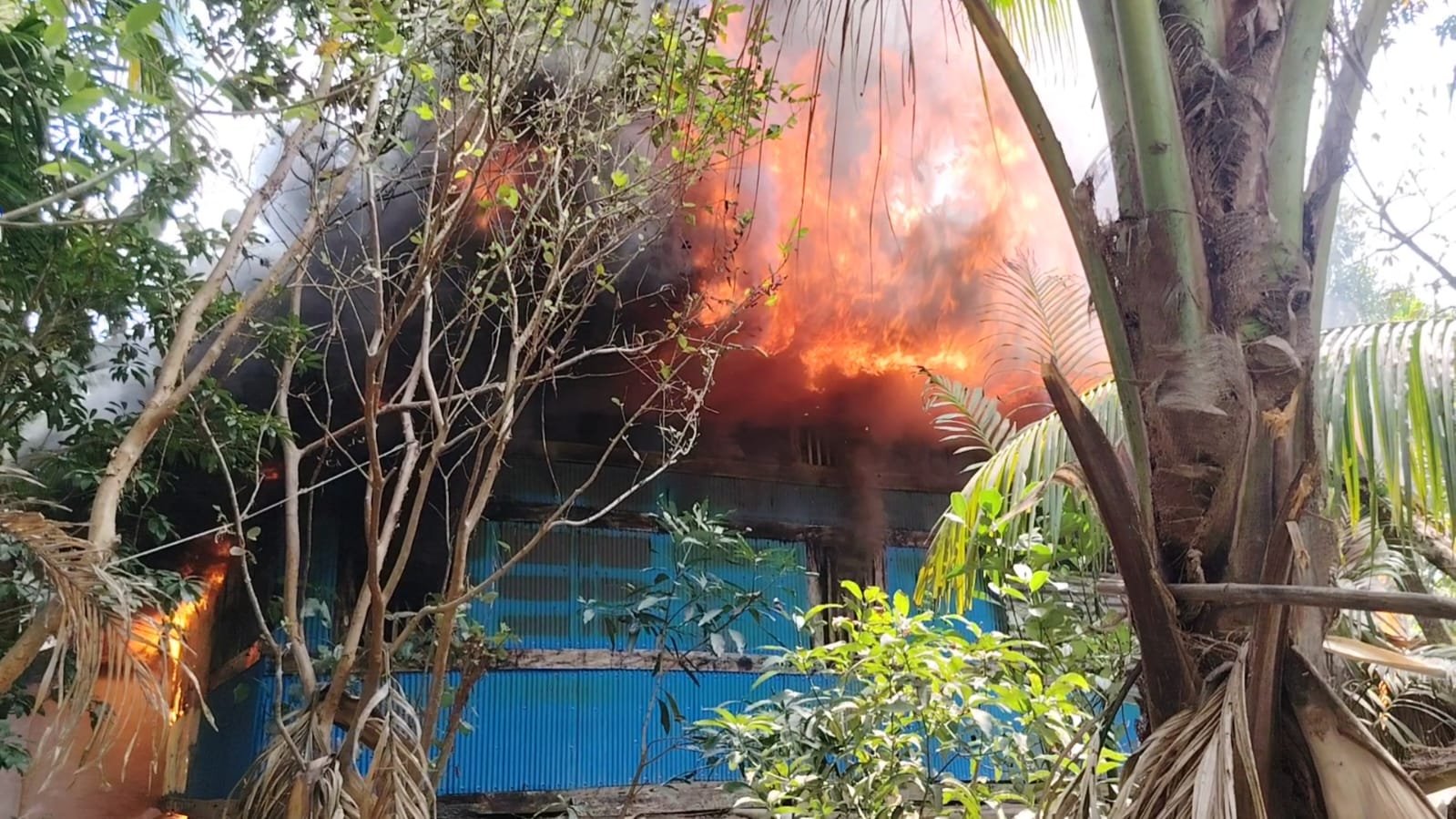 স্থানীয় সূত্র ও পরিবার জানায়, সকাল ১১টার দিকে আবু সালেহর স্ত্রী শিশুদের জন্য রান্না করতে চুলা জ্বালান। রান্না চলাকালে তিনি অন্য কাজে ঘরের ভেতরে ব্যস্ত হয়ে পড়েন। ধারণা করা হচ্ছে, রান্নাঘর থেকেই আগুনের সূত্রপাত ঘটে এবং দ্রুত পুরো ঘরে ছড়িয়ে পড়ে। ঘরের ভেতরে থাকা গ্যাস সিলিন্ডার ও ফ্রিজ বিস্ফোরিত হওয়ায় আগুনের তীব্রতা আরও বেড়ে যায়। ফলে অল্প সময়ের মধ্যেই ঘরের ভেতরে থাকা সব মালামাল পুড়ে ছাই হয়ে যায়।