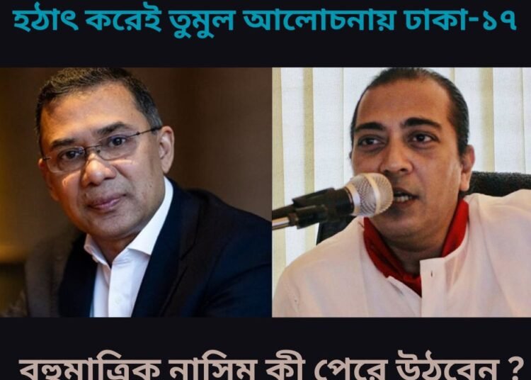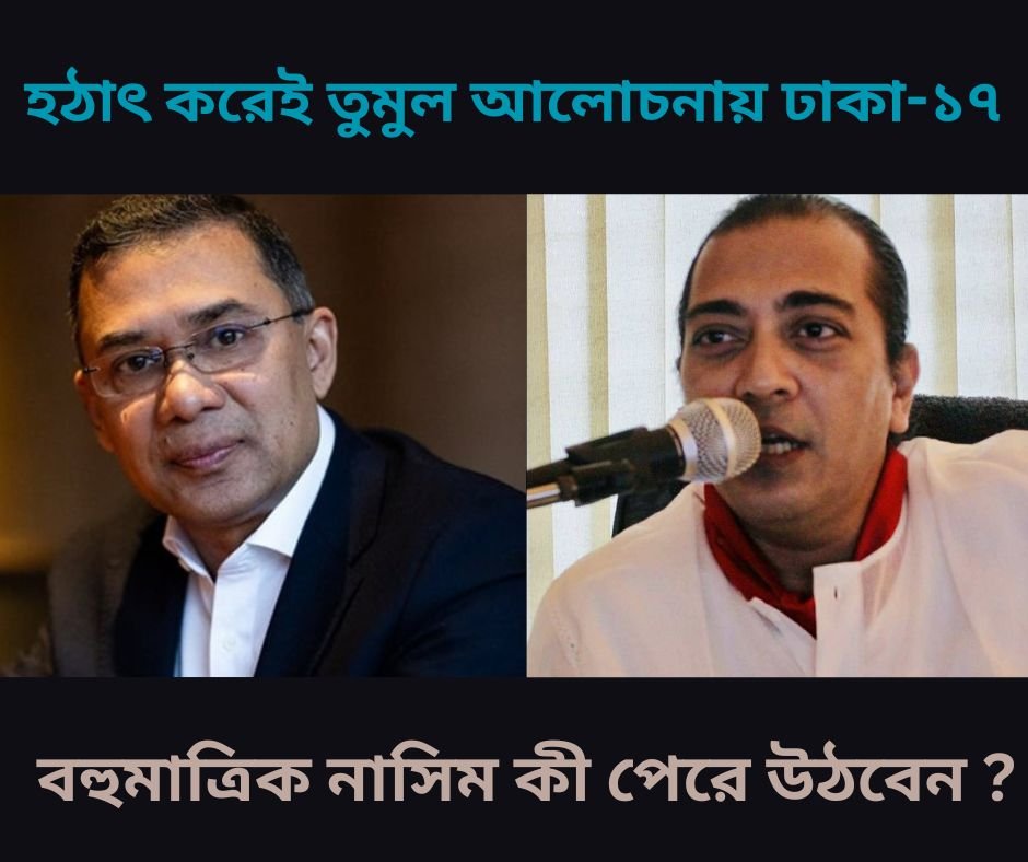 এদিকে দেশের সাবেক প্রধানমন্ত্রী বেগম খালেদা জিয়ার মৃত্যুর পর তারেক রহমান দেশের অন্যতম শ্রেষ্ঠ রাজনৈতিক দল বিএনপির পরিপূর্ণ হাল ধরেছেন। অন্যদিকে প্রাসঙ্গিক বাস্তবতায় সারাদেশে বিএনপির প্রতিপক্ষ শক্তি হিসাবে জামায়াতে ইসলামী নেতৃত্বাধীন নতুন জোট সারাদেশে তুমুল আলোচনার জন্ম দিয়েছে। তবে জামায়াতে ইসলামী ঢাকা-১৭ আসনে শক্ত অবস্থানে নেই, তা বলাই বাহুল্য। ঠিক তেমন হিসাব নিকেশকে ছাপিয়ে যেয়ে কামরুল হাসান নাসিম নির্বাচন করতে উদ্যত হওয়াই ঢাকা-১৭ আসনে দুই হেভিওয়েট প্রার্থীর লড়াই যে হতে যাচ্ছে তা নিয়ে সন্দেহ নেই বলেই ধরে নেয়া হচ্ছে।
