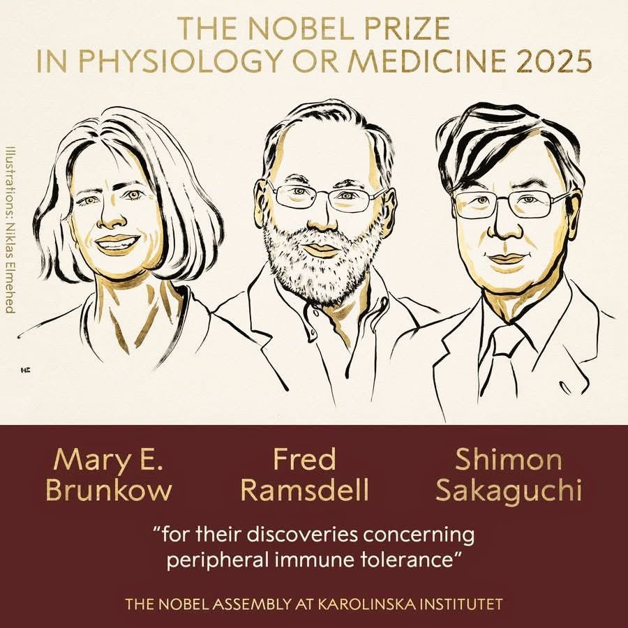 এ বছরের চিকিৎসাবিজ্ঞানে নোবেল পুরস্কার (২০২৫) সেই শান্তিদূতদের রহস্য উন্মোচনকারী তিন বিজ্ঞানীর ঝুলিতে গেছে। এরা হলেন—Mary E. Brunkow ও Fred Ramsdell (মার্কিন যুক্তরাষ্ট্র), এবং Shimon Sakaguchi (জাপান)।
