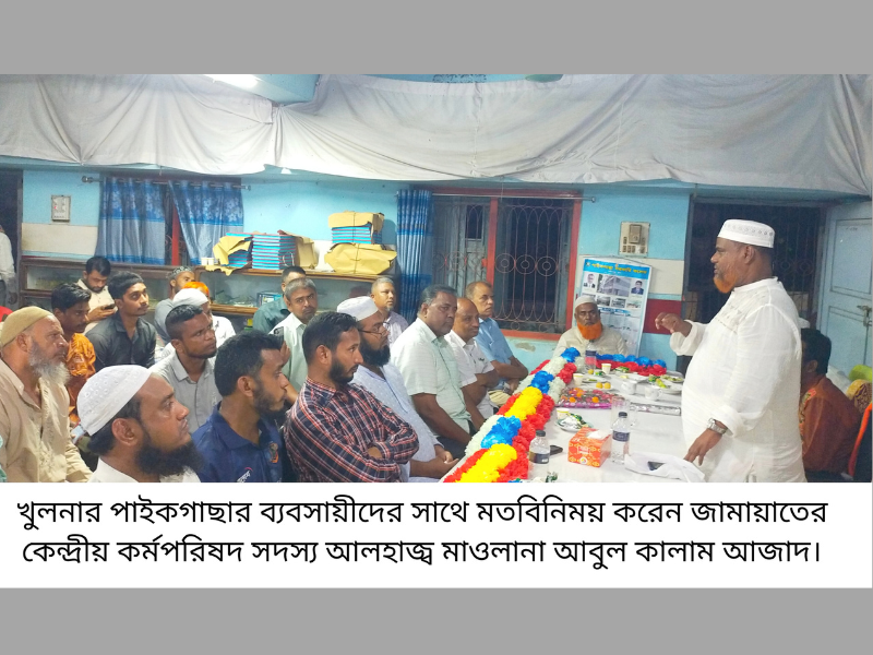 ষোলআনা ব্যবসায়ী সমবায় সমিতির সভাপতি জিএম শুকুরুজ্জামান এর সভাপতিত্বে ও বাজার বস্ত্র ব্যবসায়ী সমবায় সমিতির সাধারণ সম্পাদক মুহাম্মদ শফিয়ার রহমানের সঞ্চালনায় সভায় বক্তব্য রাখেন জেলা জামায়াতের কর্মপরিষদ সদস্য আলহাজ্ব মাওলানা আমিনুল ইসলাম, শিবিরের জেলা সভাপতি আবুজার গিফারী, জামায়াতের পৌর নায়েবে আমীর সম আব্দুল্লাহ আল মামুন, ব্যবসায়ী সাজ্জাত আলী সরদার, আনোয়ার হোসেন, ইলিয়াস হোসেন, মনোহর চন্দ্র সানা, মধুরঞ্জন কর্মকার, সুনীল মন্ডল, কার্তিক চন্দ্র দেবনাথ, আলহাজ্ব মুরশাফুল আলম, নাসির হোসেন, মোশাররফ হোসেন, মন্টু কাগজী, এনামুল হক, শাহীন, রাব্বু ইসলাম দিপু, আমিনুল ইসলাম বজলু, মইনুল ইসলাম, ও মনিরুল ইসলাম।