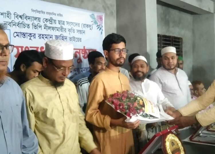নীলফামারী জেলাস্থ রাজশাহী বিশ্ববিদ্যালয়ের প্রাক্তন শিক্ষার্থীদের সংগঠন রাবিয়ান ক্লাবের উদ্যোগে আয়োজিত অনুষ্ঠানে বেশ কয়েকটি সংগঠন রাবি ভিপিকে ফুলের তোড়া ও সম্মাননা ক্রেস্ট দিয়ে সংবর্ধনা প্রদান করে। এগুলো হলো, জেলা রাবিয়ান ক্লাব, সৈয়দপুর প্রেসক্লাব, বাংলাদেশ রেলওয়ে এমপ্লয়িজ লীগ (বিআরইএল) সোস্যাল ওয়েলফেয়ার অ্যাসোসিয়েশন অফ সৈয়দপুর (সোস), বাংলাদেশ ইসলামি ছাত্র শিবির সৈয়দপুর উপজেলা ও পৌর শাখা।