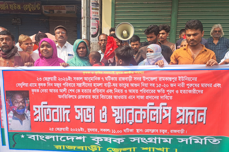 বক্তারা বলেন, কৃষক নেতা আতর আলী শেখকে পরিকল্পিতভাবে হত্যা করা হয়েছে। হত্যাকারীদের দ্রুত গ্রেপ্তার করে দৃষ্টান্তমূলক শাস্তি নিশ্চিত করতে হবে। পাশাপাশি নিহতের পরিবার ও আহতদের উপযুক্ত ক্ষতিপূরণ দেওয়ার দাবি জানান তারা।