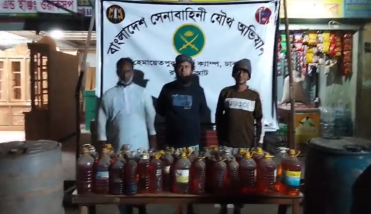 কেরানীগঞ্জ উপজেলার কলাতিয়া বাজার এলাকায় অবৈধভাবে খোলা (লুজ) জ্বালানি তেল বিক্রয়ের বিরুদ্ধে যৌথ অভিযান পরিচালিত হয়েছে। গত ২৭ জানুয়ারি ২০২৬ তারিখ সন্ধ্যা ১৯৩০ ঘটিকা থেকে রাত ২২৩০ ঘটিকা পর্যন্ত কেরানীগঞ্জ মডেল থানাধীন কলাতিয়া বাজার এলাকায় হেমায়েতপুর আর্মি ক্যাম্প কর্তৃক নিয়মিত টহল চলাকালে অবৈধভাবে খোলা অকটেন মজুত ও বিক্রির কার্যক্রম শনাক্ত করা হয়।