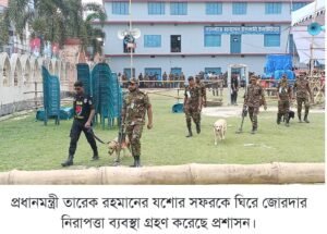 যশোরে প্রধানমন্ত্রী তারেক রহমানের সফরের অংশ হিসেবে আজ রোববার (২৬ এপ্রিল) ঈদগাহ ময়দানে ডগ স্কোয়াড দিয়ে তল্লাশি চালানো হয়।
