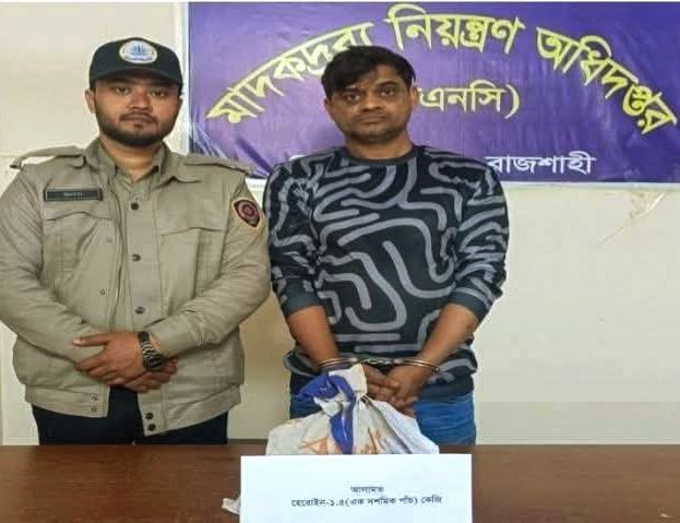 রাজশাহী মহানগরীর দামকুড়া থানা এলাকায় অভিযান চালিয়ে ১ কেজি ৫০০ গ্রাম হেরোইনসহ মোঃ মশিউর রহমান (৪০) নামে এক মাদক কারবারিকে গ্রেপ্তার করেছে মাদকদ্রব্য নিয়ন্ত্রণ অধিদপ্তর (ডিএনসি)। মঙ্গলবার (১৭ ফেব্রুয়ারি) ভোর সাড়ে ৫টার দিকে নতুন কসবা গ্রাম এলাকায় এ অভিযান পরিচালিত হয়।