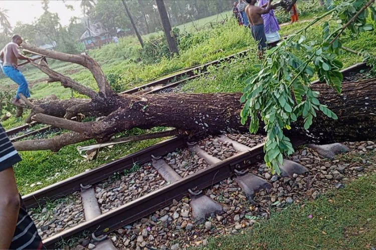 নোয়াখালীতে রেললাইনে গাছ উপড়ে পড়ে ট্রেন চলাচল বন্ধ, উদ্ধার কাজ চলছে